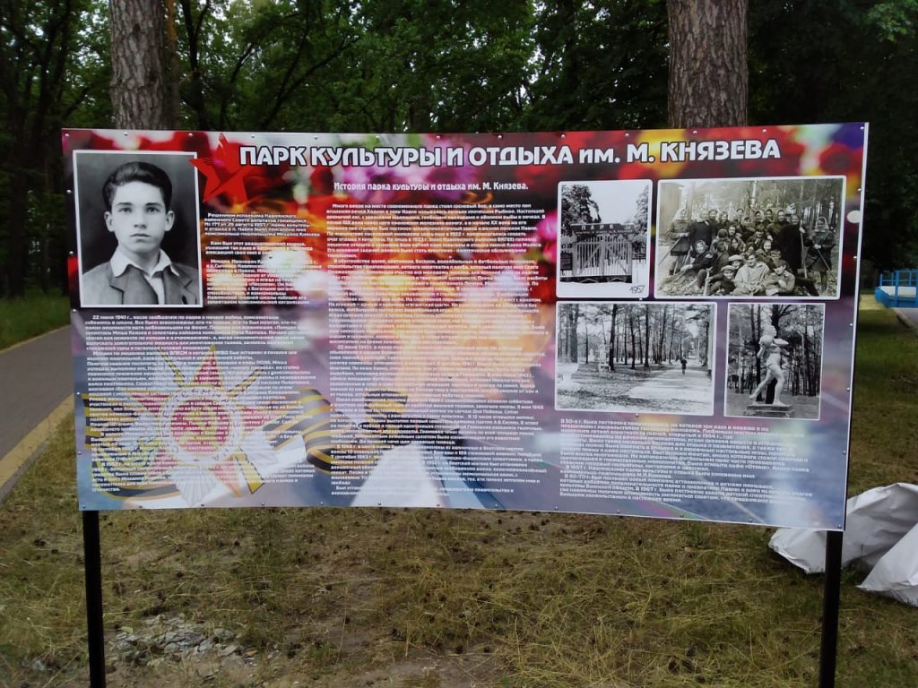 На стенде представлена информация о жизни и деятельности М. Князева, а также история парка за более чем столетний период. Установка стенда стала возможной благодаря помощи и поддержке главы Навлинского района А. Прудника, Т. Слуцкой, Г. Логутовой, В. Семёнову, Н. Курилко, А. Сафоновой, Н. Борисенко, Е. Сидорову, Е. Петрищеву и музею Партизанской славы.