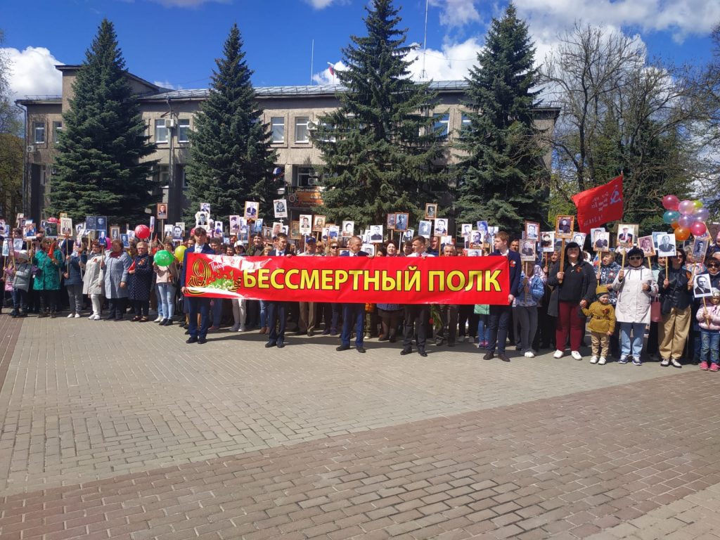 9 мая – день нашей гордости, нашего величия, мужества и отваги. День нашей памяти. Мы в вечном долгу перед теми, кто подарил нам мир. Мы бесконечно благодарны ветеранам Великой Отечественной войны за подвиг, за самоотверженность и бесстрашие. Более трехсот человек приняли участие в шествии “Бессмертного полка” в п. Навля. Взрослые и дети прошли в колонне с портретами участников Великой Отечественной войны по центральной улице поселка от сквера им. Комсомольцев -подпольщиков до площади им. Ленина, где приняли участие в торжественном митинге, посвященном 77-й годовщине Великой Победы.