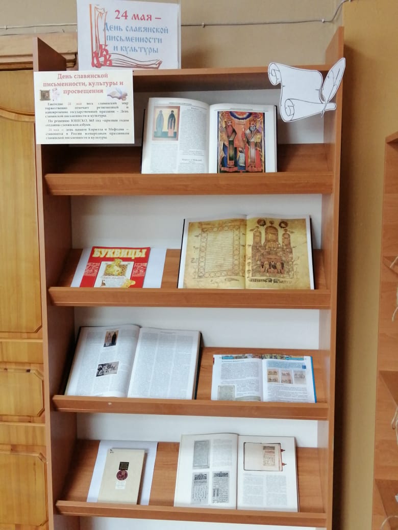 В рамках этого праздника в Межпоселенческой библиотеке оформлена выставка литературы «По страницам славянской письменности». Приглашаем к знакомству с книгами, представленными на ней.