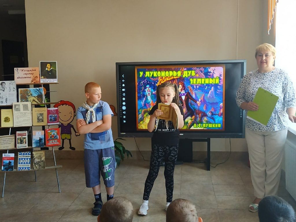 Ребята активно принимали участие в литературной викторине по сказкам, участвовали в играх и конкурсах, посмотрели мультфильм «Сказка о мёртвой царевне и о семи богатырях». Многие из присутствующих прочитали свои любимые стихи и отрывки из сказок А.С.Пушкина.