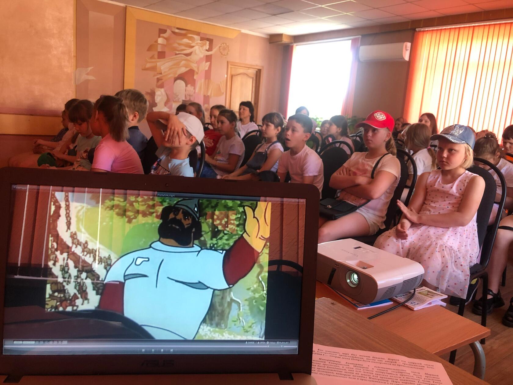 Завершился исторический час просмотром мультфильма «Илья Муромец и Соловей – Разбойник»