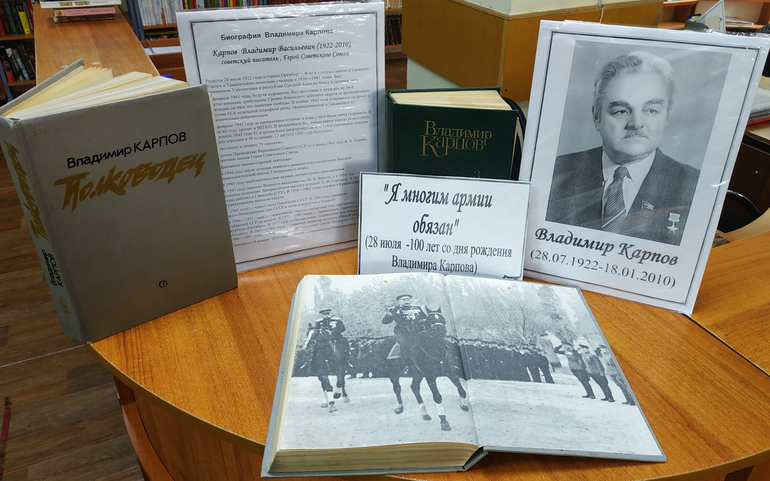 К юбилею писателя в Межпоселенческой библиотеке оформлена выставка «Я многим армии обязан».