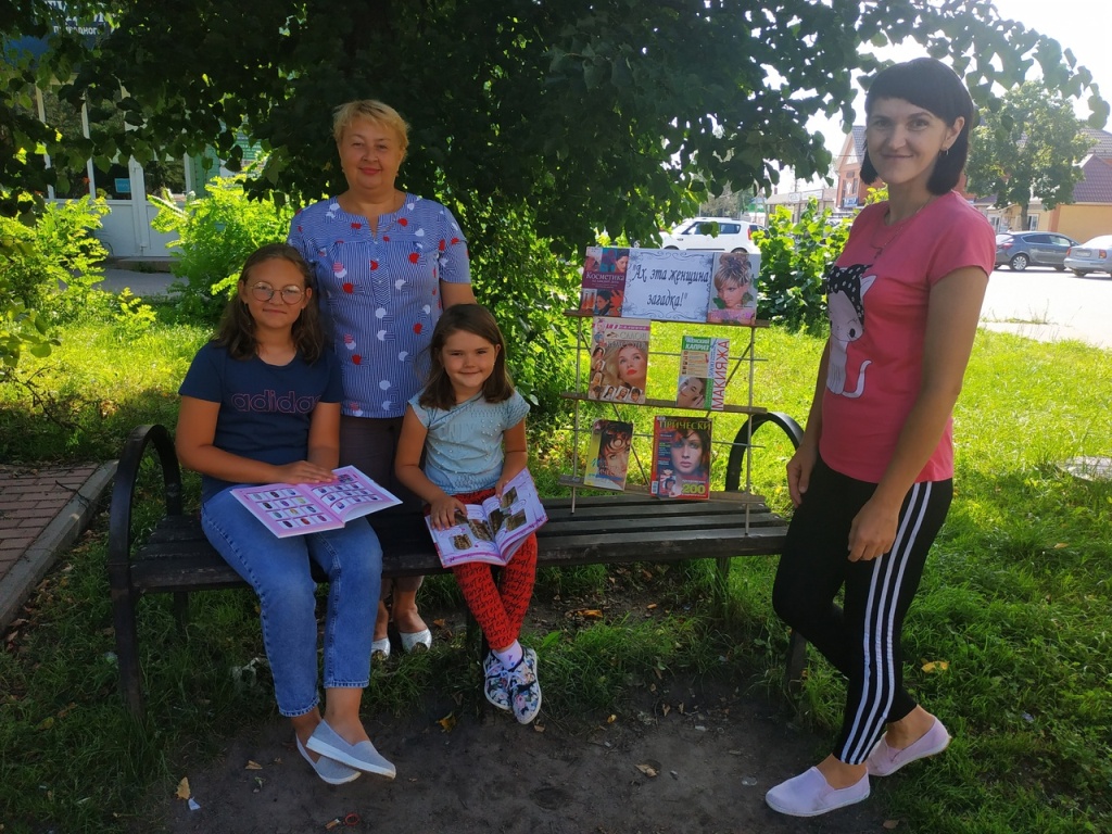 Возле книжной выставки многие девушки между собой делились секретами красоты из журналов и книг.