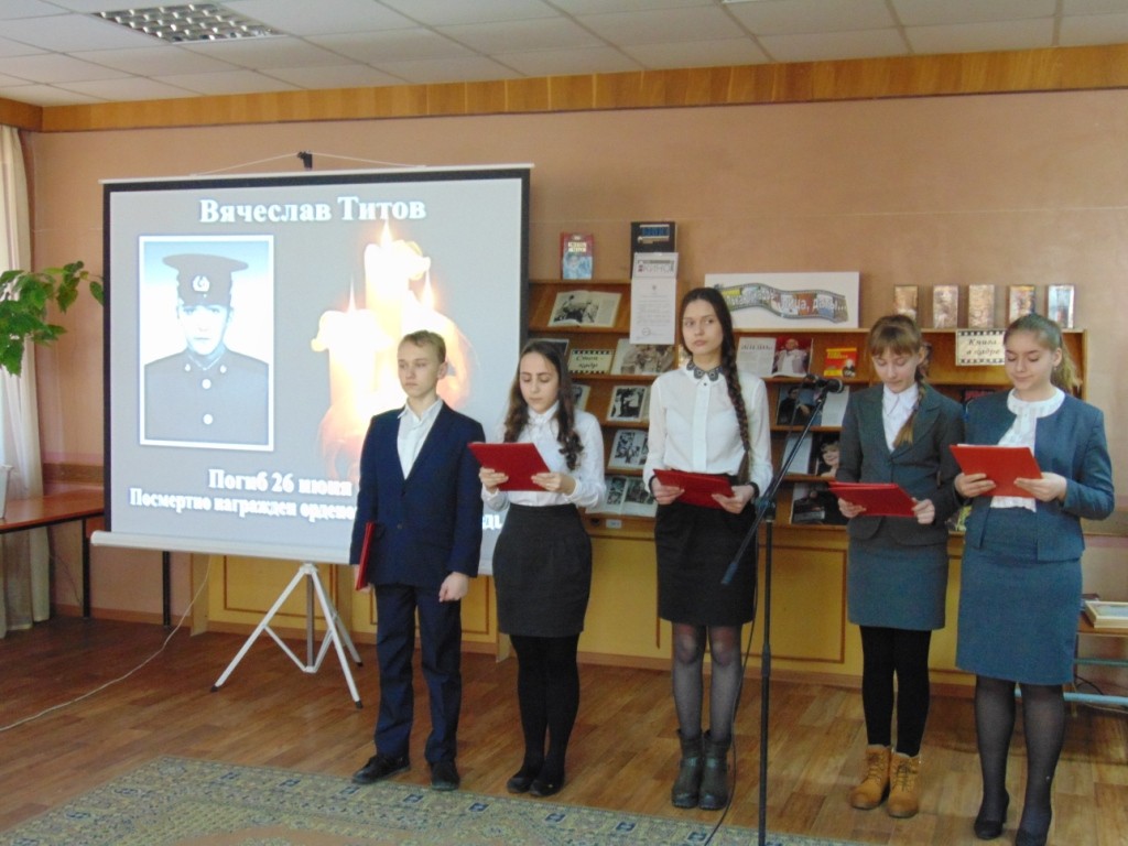 17 февраля 2016г. в рамках месячника гражданско-патриотического воспитания и оборонно-массовой работы в межпоселенческой библиотеке был организован вечер-реквием «Дорогами Афганистана», посвященный 27-й годовщине вывода советских войск из Афганистана.