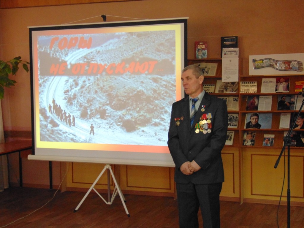 Председатель районного отделения «Российский союз ветеранов Афганистана» А. Лошкарев поделился своими воспоминаниями о службе в Афганистане, рассказал о деятельности районного отделения «Российский союз ветеранов Афганистана», пожелал молодежи любить свою Родину, быть достойными гражданами и патриотами России.