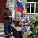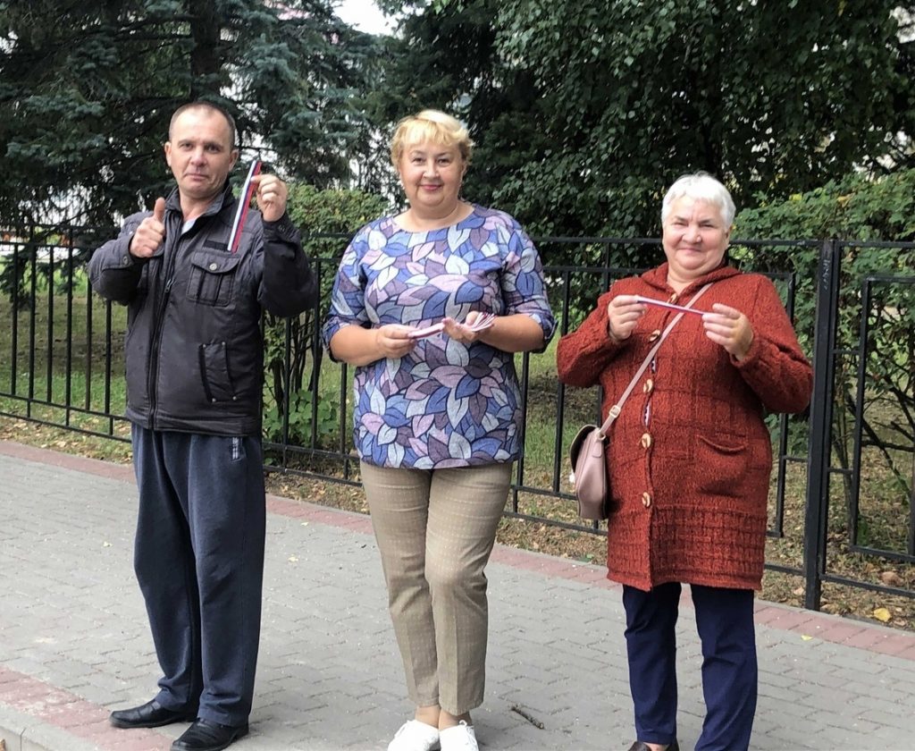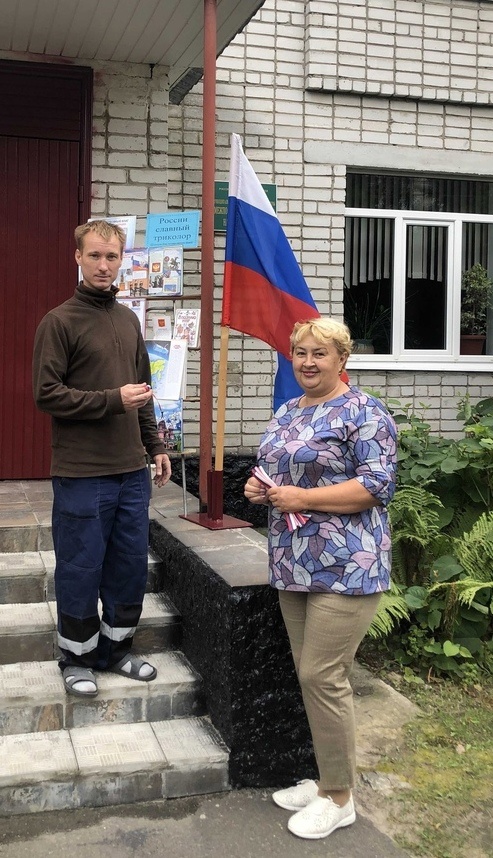 Библиотекари подарили жителям посёлка главный символ праздника – ленточку с триколором.