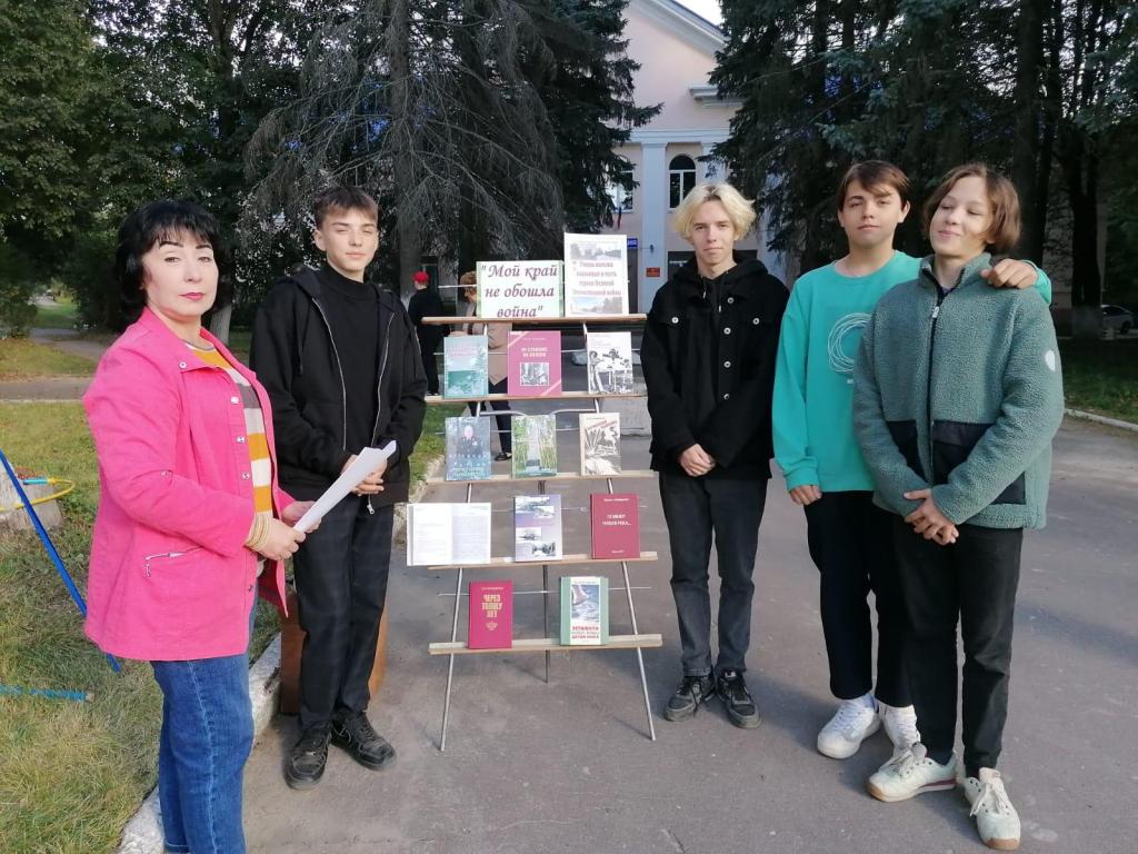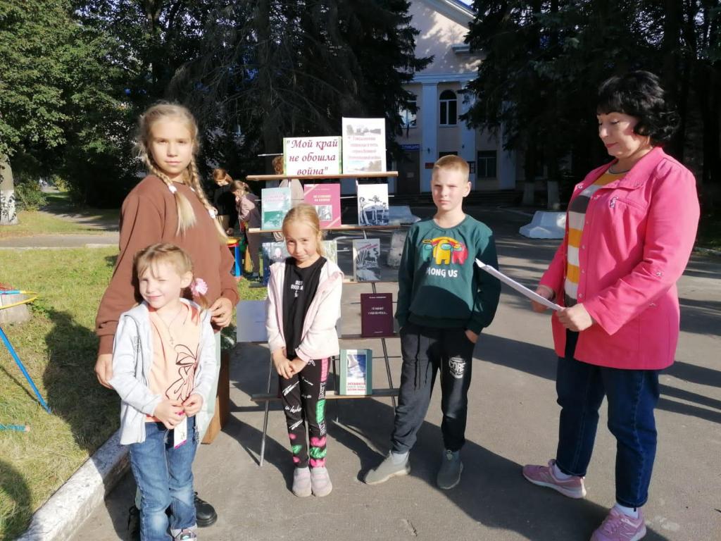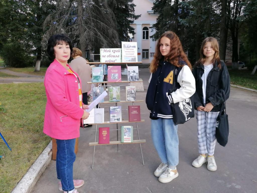 3 сентября в день города и 79-ой годовщины освобождения Навли от немецко-фашистских захватчиков, сотрудники Межпоселенческой библиотеки Навлинского района на площади поселка организовали выставку «Мой край не обошла война». На выставке были представлены книги о родном поселке в годы войны, о навлинской молодежной подпольной организации, воспоминания жителей Навли – живых свидетелей и участников страшных событий времен немецкой оккупации Навлинского района.