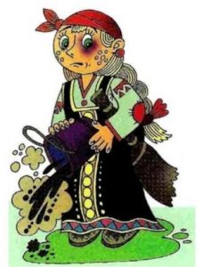 Так, по обычаю, молодую на второй день свадьбы гости, предварительно разбив горшки (в знак утраты девичества), заставляли мести пол и приговаривать: «Мети-мети – да из избы не выноси, а сгребай под лавку да клади в печь, чтоб дымом вынесло!».