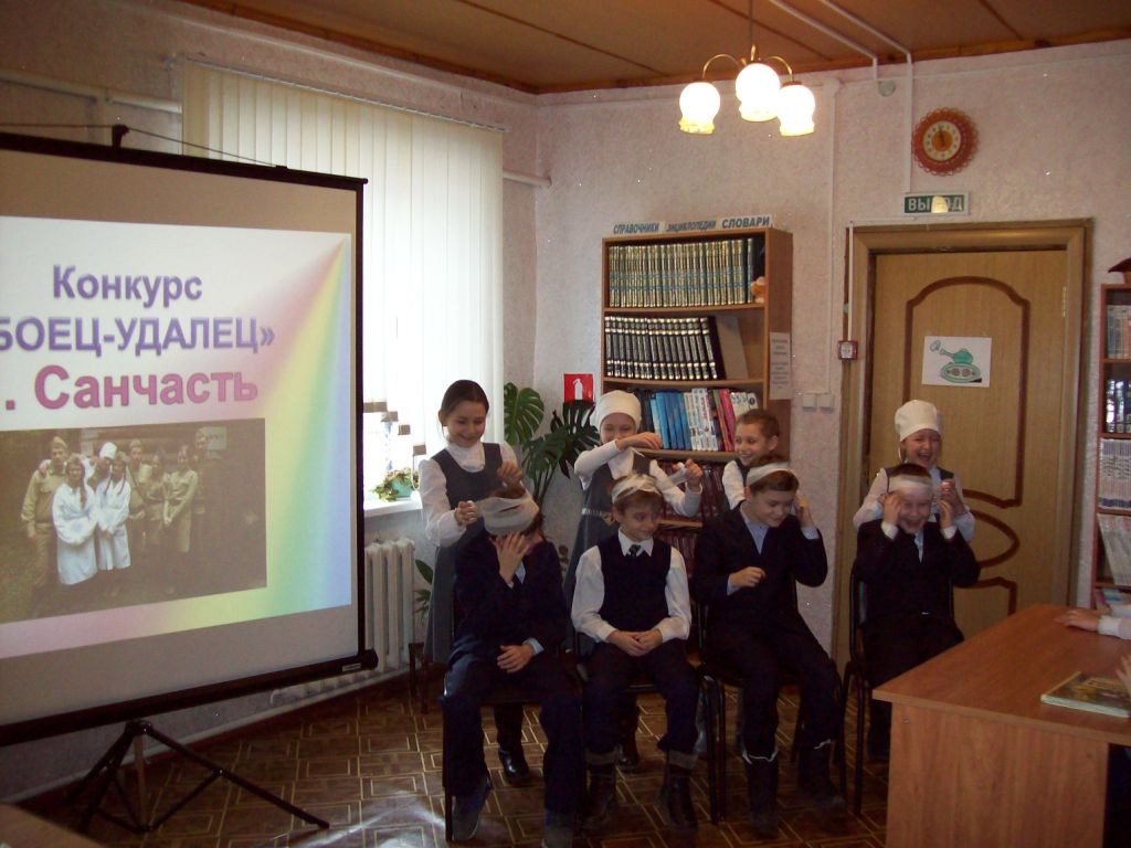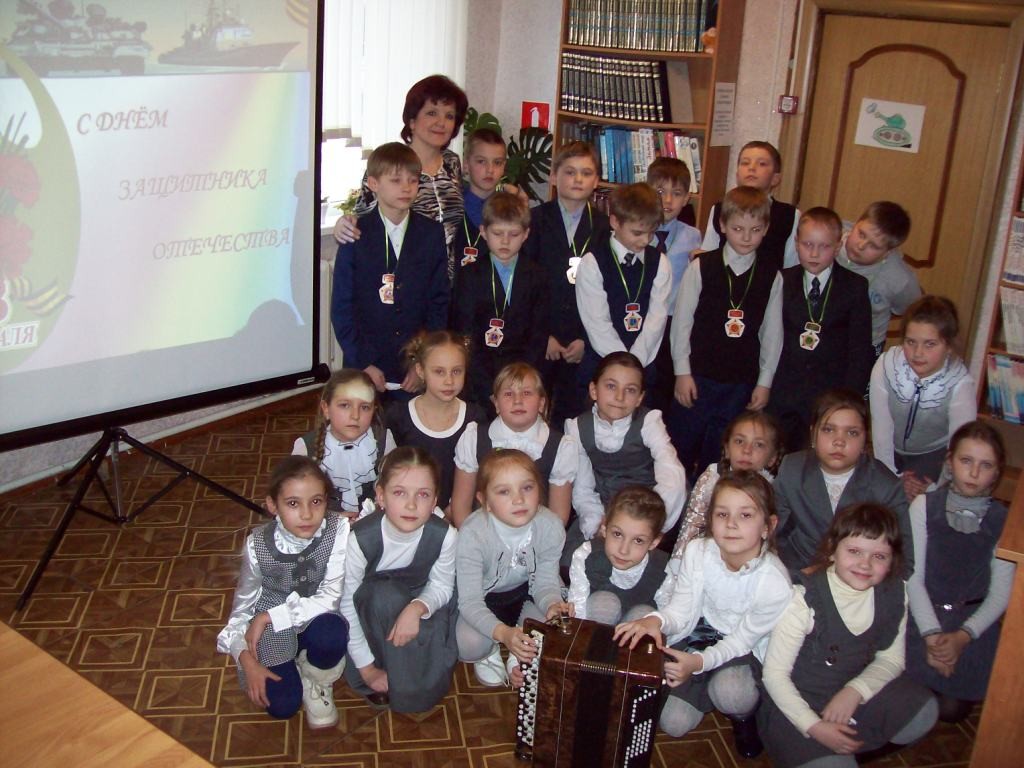 Девочки подготовили для мальчишек музыкальный сюрприз – частушки. Работник библиотеки Казанцева Л.Н. аккомпанировала на баяне.