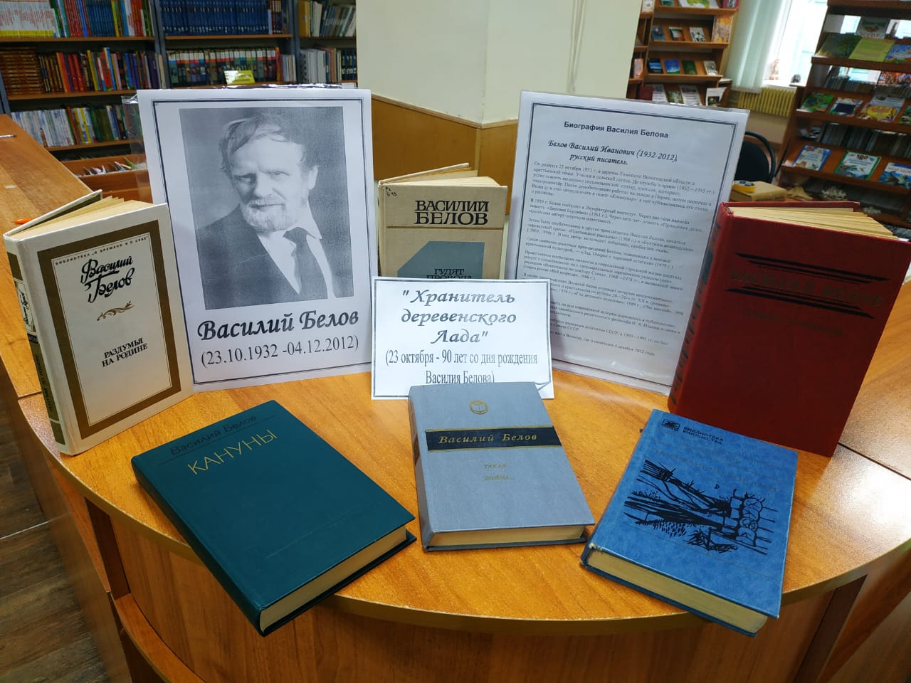 В нашей библиотеке к юбилею Василия Ивановича Белова оформлена выставка “Хранитель деревенского Лада “.