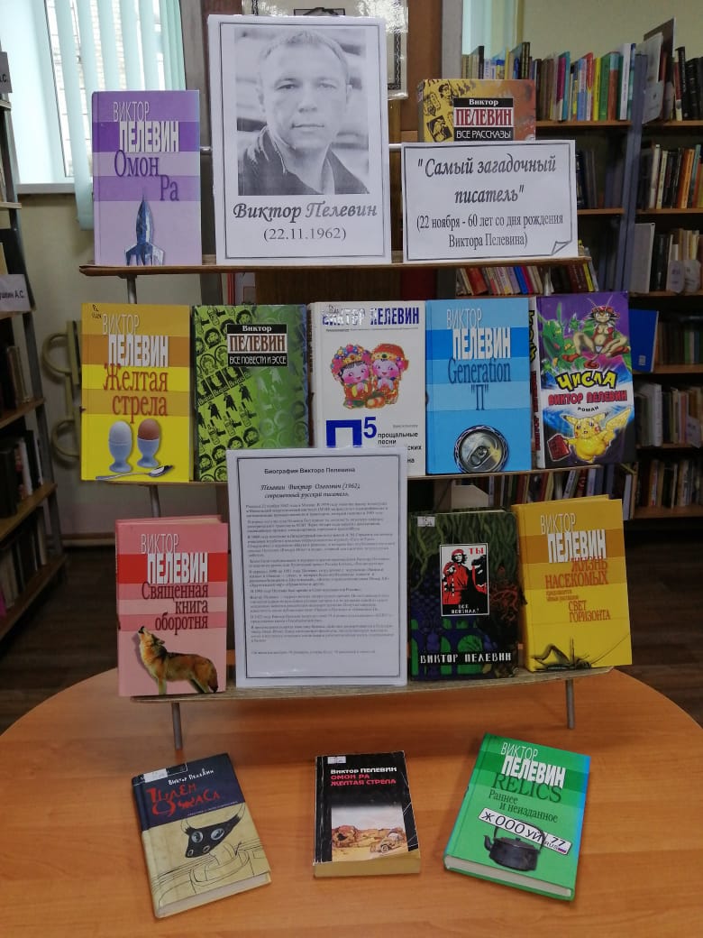 К юбилею В.Пелевина в нашей библиотеке оформлена выставка “Самый загадочный писатель”.