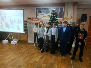 Они поговорили об особенностях каждого зимнего месяца, познакомились с приметами этого удивительного времени года. Вспомнили пословицы и поговорки. Ребята с азартом участвовали в непростом конкурсе зимних скороговорок. Наперебой мальчишки и девчонки отгадывали загадки, отвечали на вопросы викторин. Вместе с ведущей вспомнили сказки, связанные с зимней тематикой. Затем обсудили, какие птицы остаются зимовать и выяснили, какие звери не впадают в спячку. Во время просмотра видеопрезентации, полюбовались великолепными зимними пейзажами. Желающие прочитали стихи о зиме и зимних забавах. И, конечно же, спели самую популярную новогоднюю песенку – «В лесу родилась елочка». Присутствующие окунулись в атмосферу праздника и получили заряд хорошего настроения, посмотрев любимый мультфильм «Зима в Простоквашино».