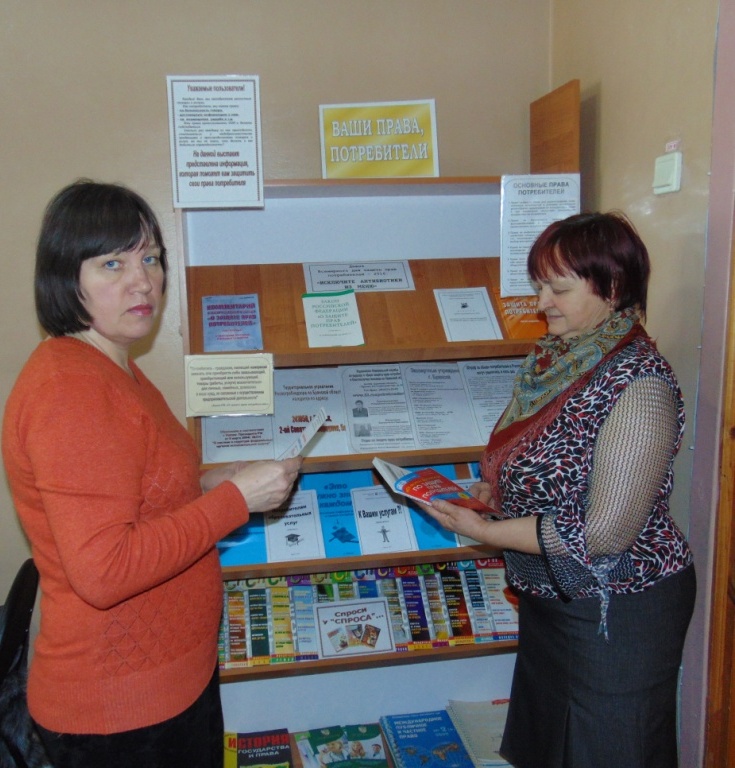 В преддверии этого дня в библиотеке была оформлена книжная выставка «Ваши права, потребители», на которой представлены информационные материалы по вопросам защиты прав потребителей, прав пациентов, прав туристов и многое другое.
