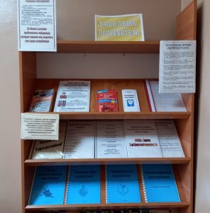 В Центре правовой информации Межпоселенческой библиотеки оформлена выставка “Ваши права, потребители”, на которой представлена информация о правах потребителей, законодательные акты, адреса организаций, занимающихся вопросами защиты прав потребителей.