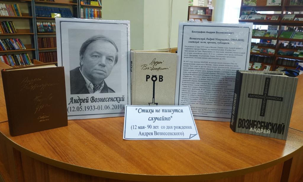 К юбилею А.Н.Вознесенского в библиотеке оформлена выставка “Стихи не пишутся случайно”.