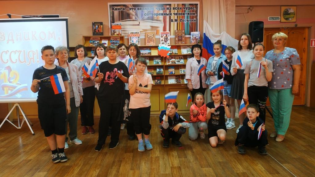 К этому знаменательному событию сотрудники Межпоселенческой библиотеки для воспитанников летнего школьного лагеря ДЮЦа провели литературно-музыкальную композицию «Моя Родина – Россия!». Ведущие рассказали гостям об истории праздника, что Россия – это независимое государство, имеющее свою территорию, свой государственный язык, свои законы, своего всенародно выбранного Президента и свою государственную символику: герб, флаг и гимн.