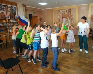 16 июня сотрудники библиотеки провели для ребят, посещающих летний школьный лагерь необычное мероприятие «С физкультурой я дружу!».