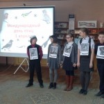 6 апреля 2016г. в Межпоселенческой библиотеке была проведена конкурсно – игровая программа «Пусть трели звонкие звучат», посвященная Международному дню птиц, который отмечался 1 апреля.