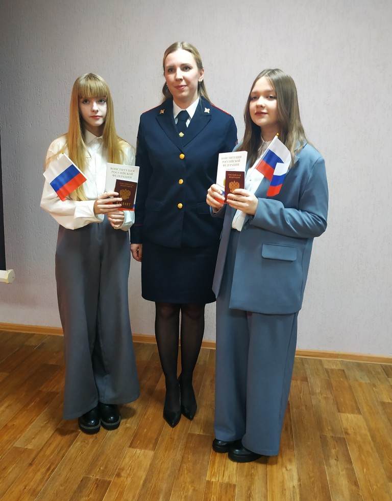 В Навлинской библиотеке прошел час гражданственности “Моей Отчизны основной закон”, посвященный Дню Конституции. Библиотекари рассказали об истории Конституции и паспорта. В торжественной обстановке состоялась церемония вручения паспортов юным навлинцам. Глава администрации Навлинского района, секретарь местного отделения партии “Единая Россия” Александр Александрович Прудник и начальник миграционного пункта МО МВД России “Навлинский” Евгения Александровна Сереветник поздравили юношей и девушек с этим важным событием в их жизни, пожелали ребятам хорошо учиться, быть достойными гражданами своей страны, любить Родину и гордиться ее историей.