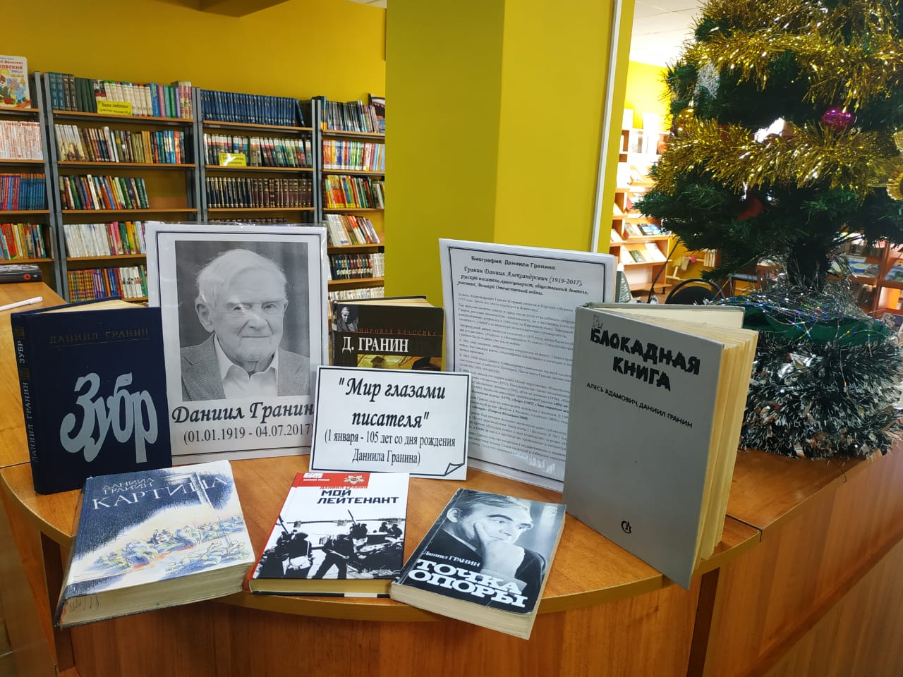 К юбилею писателя в Навлинской библиотеке оформлена выставка “Мир глазами писателя”.
