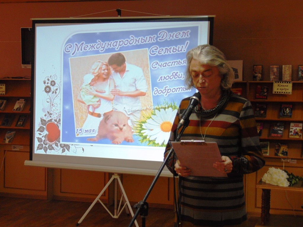 13 мая 2016г. в Межпоселенческой библиотеке прошло мероприятие, посвященное Международному дню семьи. В этот день в библиотеку были приглашены пять семей, которые на протяжении не одного десятка лет сохраняют любовь и уважение, оберегают свой семейный очаг от бурь и невзгод окружающего мира и являются хорошим примером для молодежи. Гости тепло и трогательно рассказывали о своих семьях, делились своими секретами семейного счастья, главные из которых – любовь и взаимопонимание.