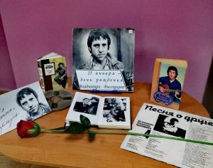 Ко дню рождения Владимира Высоцкого в библиотеке оформлена выставка «Я, конечно, вернусь…» На ней представлены сборники стихов, воспоминания современников поэта, пластинки.