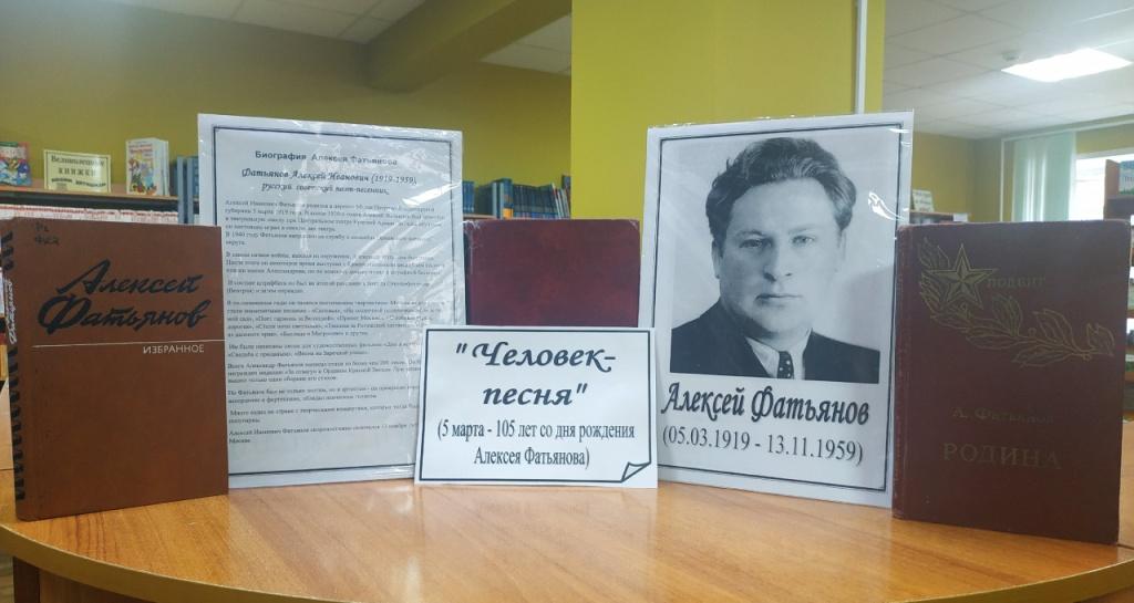 К юбилею поэта-песенника в нашей библиотеке оформлена выставка “Человек-песня”.