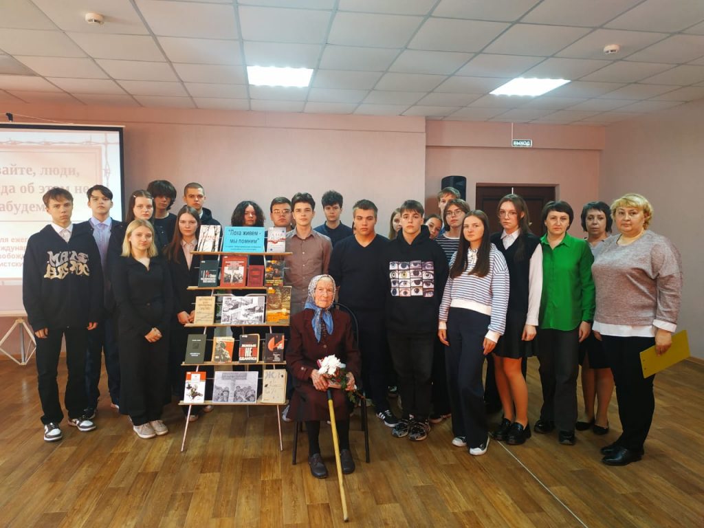 Участники встречи почтили минутой молчания всех погибших, замученных в фашистских застенках, и познакомились с выставкой литературы «Пока живём – мы помним».