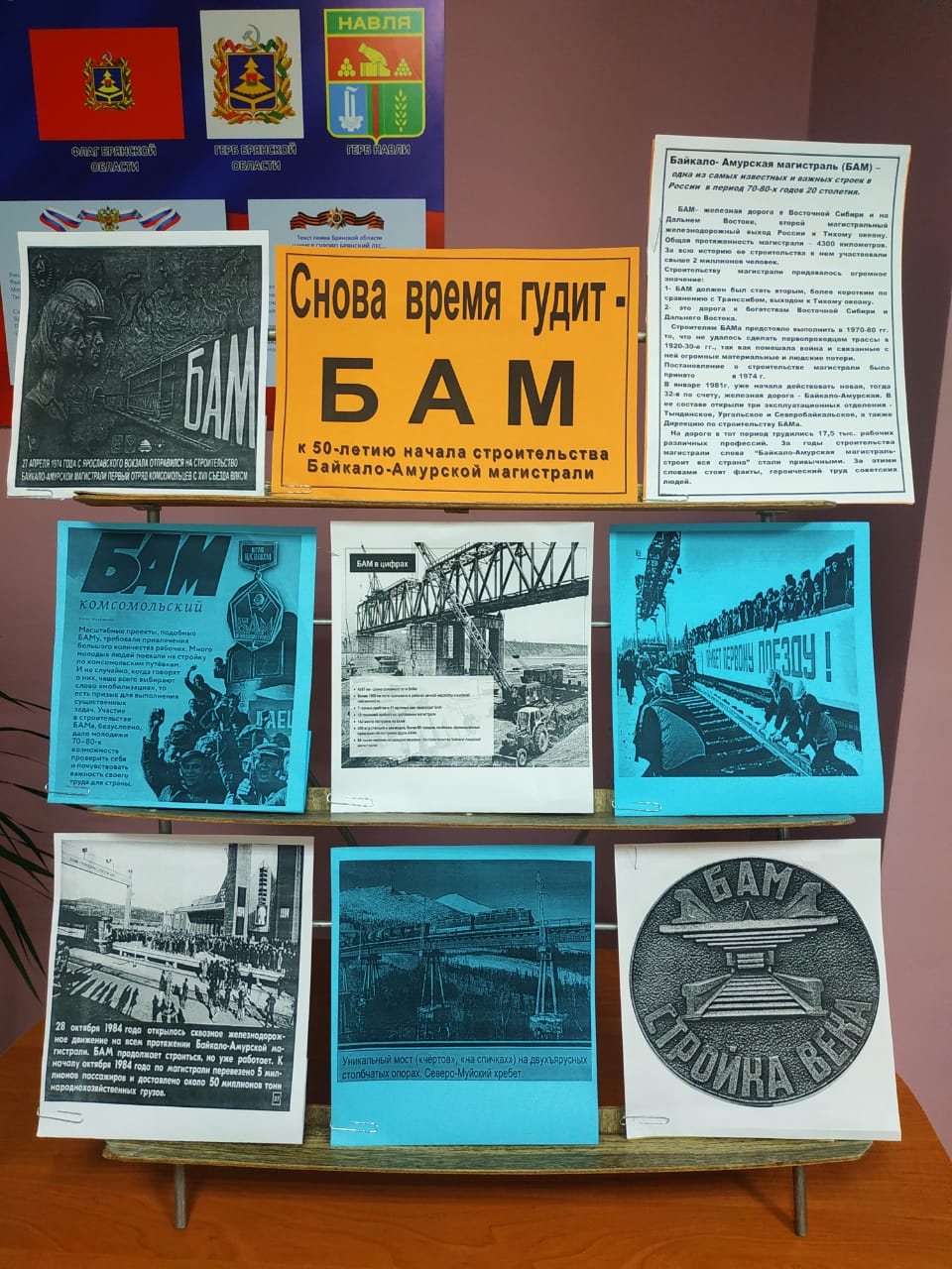Познакомиться с материалами по теме можно на выставке, представленной в Межпоселенческой библиотеке – «Снова время гудит – БАМ».