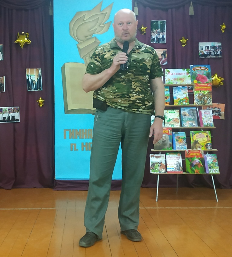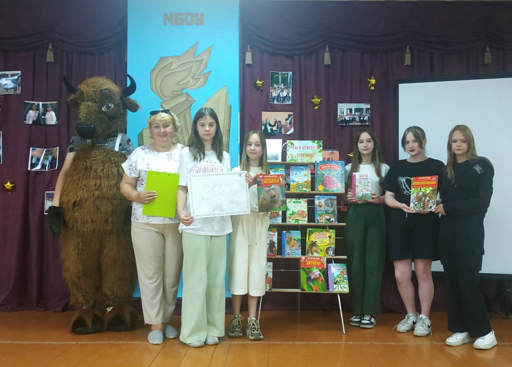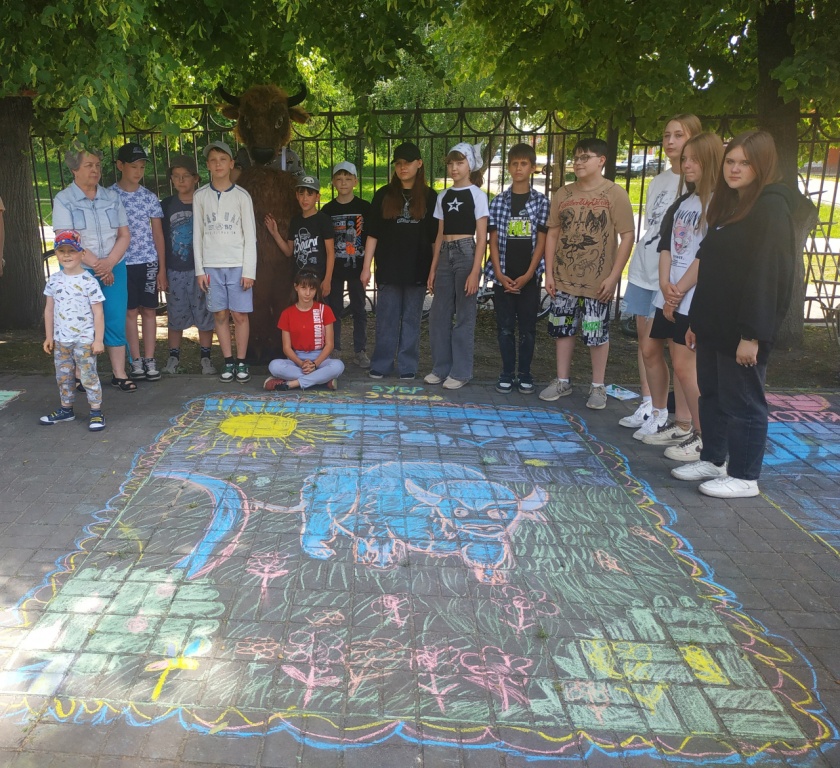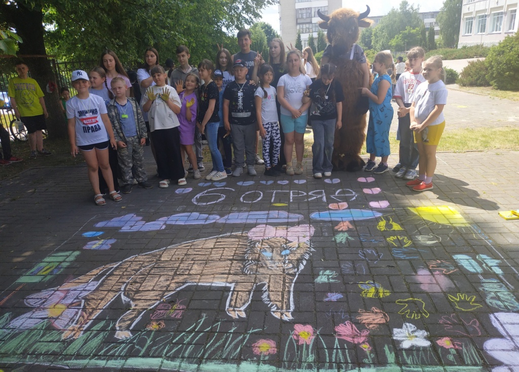 На праздник к ребятам приехали гости – сотрудники заповедника “Брянский лес”- Виктория Ивановна и Максим Валерьевич Бабанины и зубрёнок Мефодий. Максим Валерьевич рассказал ребятам об обитателях заповедника, ответил на вопросы ребят, а Виктория Ивановна провела для гимназистов викторину о зубрах и конкурс рисунков на асфальте. Мальчишки и девчонки с большим удовольствием рисовали обитателей заповедника, а забавный зубрёнок внимательно следил за соревнованиями. В результате победила дружба. Участники получили грамоты и подарки от заповедника «Брянский лес».