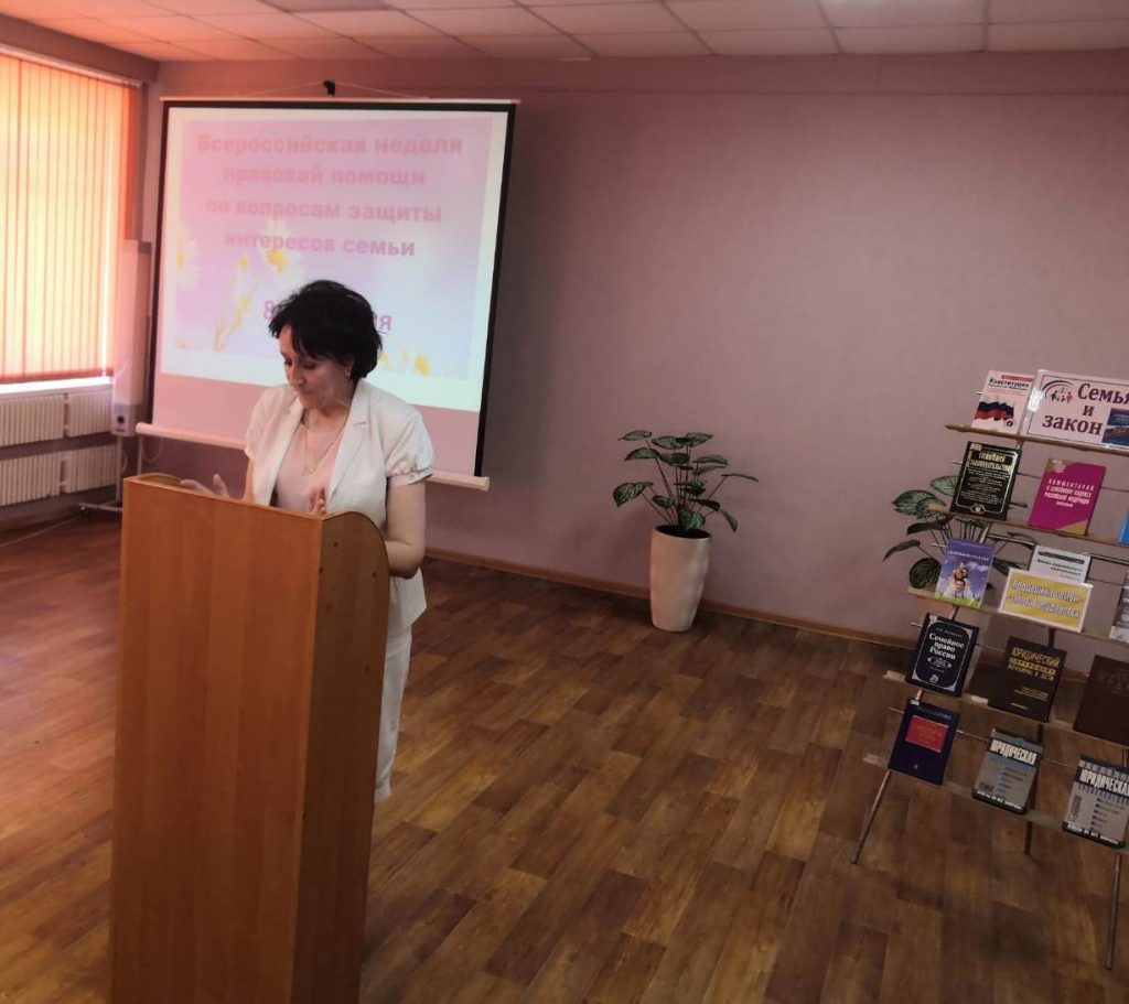 В рамках Года семьи и празднования Дня семьи, любви и верности, который ежегодно отмечается 8 июля в День памяти святых Петра и Февронии Муромских, покровителей брака в православии, и первой Всероссийской недели правовой помощи по вопросам защиты прав семьи в Навлинской библиотеке состоялся правовой час “Правовая грамотность семьи”, в котором приняли участие заместитель главы администрации Навлинского района Татьяна Львовна Малахова, нотариусы по Навлинскому району Владислав Александрович Серёгин и Анастасия Олеговна Миронова. Т. Малахова познакомила участников мероприятия с новыми законодательными актами по вопросам защиты жилищных и имущественных прав несовершеннолетних. В. Серёгин и А. Миронова рассказали присутствующим об алиментных и брачных отношениях в семье и ответили на вопросы участников мероприятия.