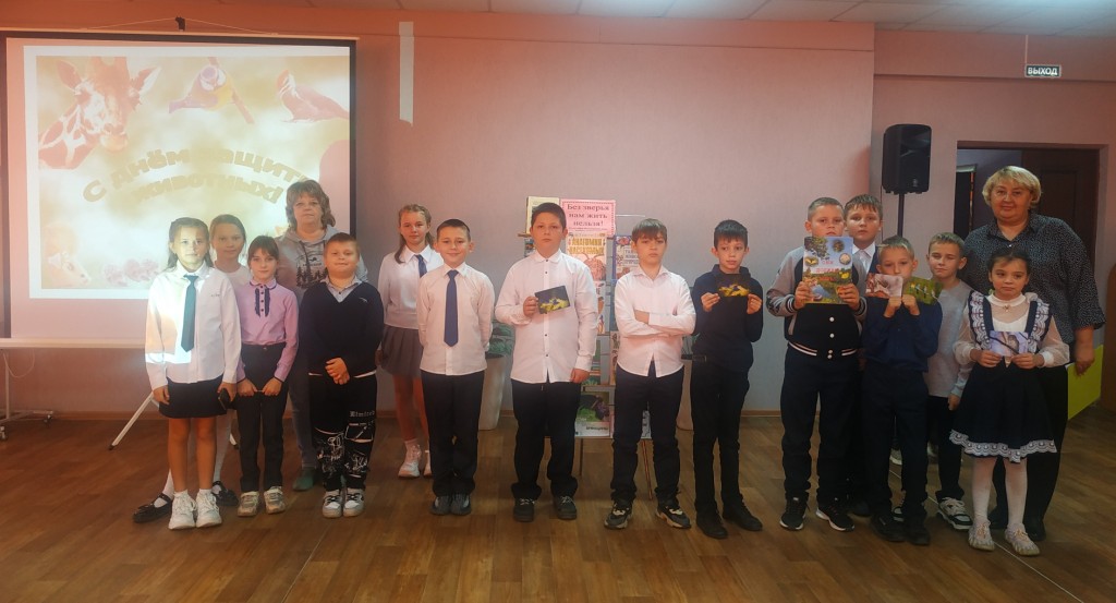 В.И.Бабанина провела для школьников викторину об обитателях заповедника, познакомила с конкурсами и акциями: «Покормите птиц», «Рисуем заповедную Россию», «Плюшевая фантазия», «С днём рождения, заповедник!» и предложила принять в них активное участие. Ребята посмотрели фильм об обитателях “Брянского леса” и познакомились с литературой выставки «Без зверья нам жить нельзя!».