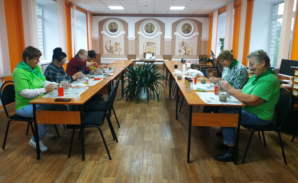 Принято считать, что шпагат можно использовать только для хозяйственных нужд, а для поделок он совершенно не подходит. Но это далеко не так. Если подойти творчески, то из него можно сделать замечательные изделия. И в этом смогли убедиться серебряные волонтеры «Горячие сердца» и участники АНО “Институт третьего поколения” на мастер-классе, который проходил в Навлинской библиотеке.
