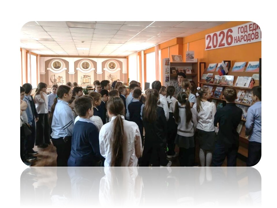 Для учащихся начальной школы Гимназии №1 п.Навля был проведён обзор у книжной выставки «Наш общий дом – Россия», где были представлены литература о народах, проживающих на территории России, их традициях и культурном наследии, а также коллекция фарфоровых кукол в национальных костюмах.