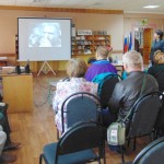 Сотрудники библиотеки подготовили для присутствующих литературно-музыкальную гостиную “От книги – к фильму. Великая Отечественная война на экранах кинематографа”. Вместе вспомнили произведения , по которым были сняты фильмы о войне: “А зори здесь тихие”, “Судьба человека”, “Звезда” и др. С удовольствием посмотрели интересные эпизоды из кинолент, на которых выросло не одно поколение. Ведущие гостиной рассказали, как подбирались актеры на главные роли. На экране мелькали знакомые лица известных артистов: Сергея Бондарчука, Ольги Остроумовой, Андрея Мартынова, Елены Драпеко и других.