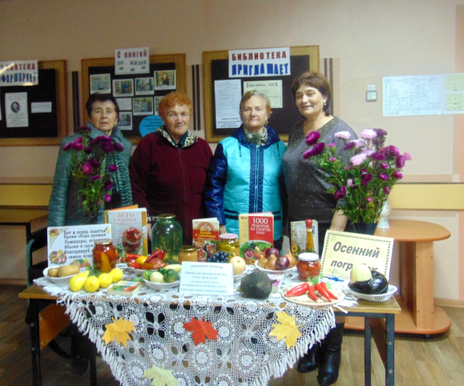 В фойе библиотеки была организована выставка “Осенний погребок”, на которой читатели библиотеки представили плоды своего труда: овощи, фрукты и домашние консервы. Библиотекари познакомили с литературой по садоводству, огородничеству и домашнему консервированию, имеющейся в фонде библиотеки.