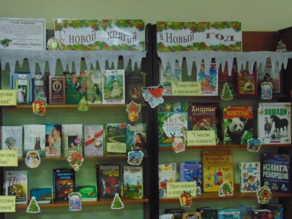Большой популярностью в праздничные дни у читателей Межпоселенческой библиотеки пользовалась выставка «С новой книгой в Новый Год». Яркое оформление выставки и новые книги, представленные на ней, привлекли внимание и взрослых и детей.