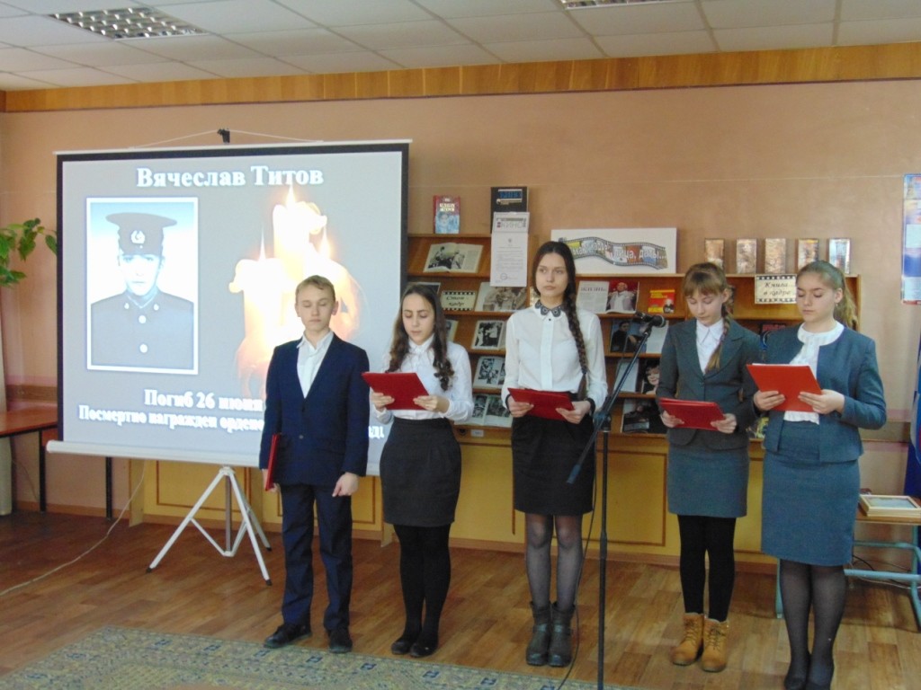 Библиотека уже много лет тесно сотрудничает с районным отделением «Российский союз ветеранов Афганистана», которое возглавляет воин – интернационалист Александр Лошкарев. Мы вместе ведем работу по военно-патриотическому воспитанию подрастающего поколения.
