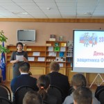 21 февраля в канун Дня защитника Отечества в Межпоселенческой библиотеке была проведена интеллектуально-конкурсная программа «Русский солдат умом и силою богат». Ее участниками стали учащиеся 7-х классов Навлинской СОШ №1. Ребята соревновались в эрудиции, ловкости, меткости, смекалке.
