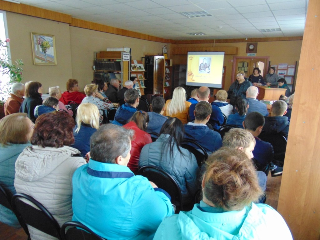 Со вступительным словом о создании книги выступила главный библиотекарь по библиотечно-информационной работе Н.С. Хохленко. Интересно об авторе и его семье в трагические годы войны рассказала местный краевед Слуцкая Тамара Константиновна. Библиотекари О. Серегина и Н. Евсеева познакомили гостей с содержанием глав книги.