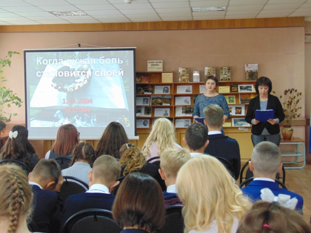 Школьникам рассказали о мировом терроризме, о крупных терактах XXI века. Ребята с замиранием сердца слушали о сентябрьских событиях 2004 года и не сдерживали слез, когда им зачитывали отрывки из дневников бесланских школьников. Память всех жертв террора собравшиеся почтили минутой молчания. Трагедия Беслана отозвалась острой болью в сердцах ребят.