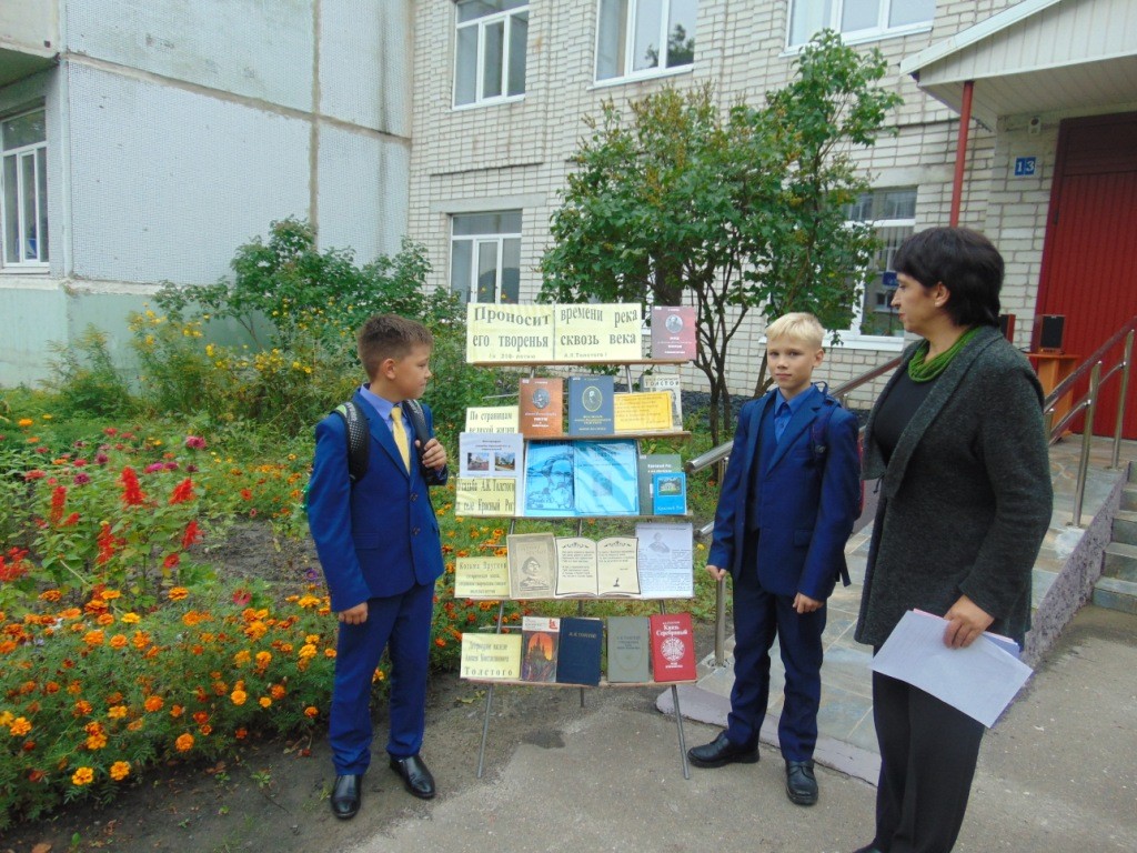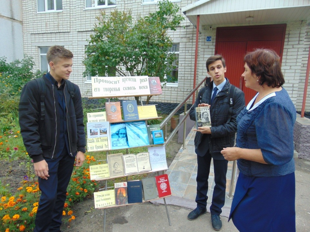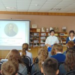 В вестибюле у стенда «Проносит времени река его творенья сквозь века» проводилось знакомство с информационными материалами о жизни и творчестве поэта, об усадьбе «Красный Рог», о Козьме Пруткове, литературном образе, созданном А.К.Толстым и его двоюродными братьями Жемчужниковыми.