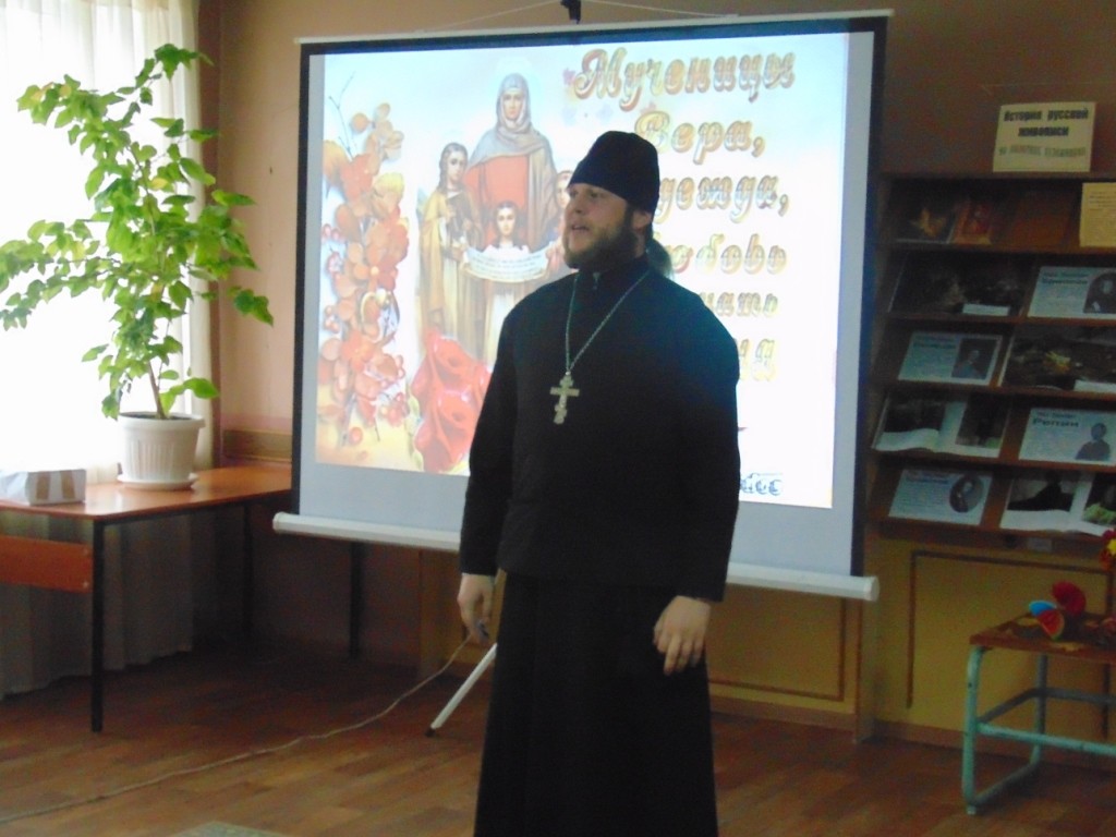 Вторая страничка посвящена духовности, памятному дню Веры, Надежды, Любови и матери их Софии, который ежегодно отмечается 30 сентября. Присутствующий на мероприятии отец Сергий, священник храма в честь Владимирской иконы Божией Матери с. Алешинка, рассказал об истории страшного события, произошедшего во 2 веке в Риме, когда три девочки и их мать были жестоко замучены за христианскую веру, дети телесно, а мать душевно, и позже были причислены Церковью к лику святых.
