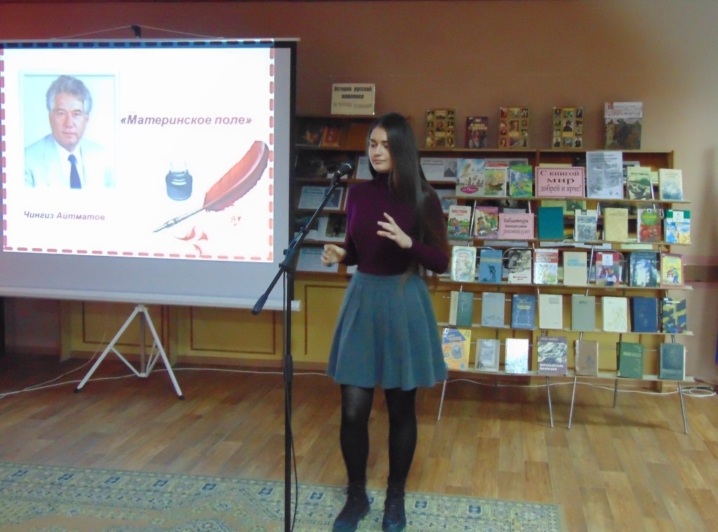Участники конкурса “Живая классика” предыдущих лет Лукачева Елизавета, Парахин Александр, Серегина Екатерина прочли отрывки из произведений Чингиза Айтматова и Марины Дружининой.