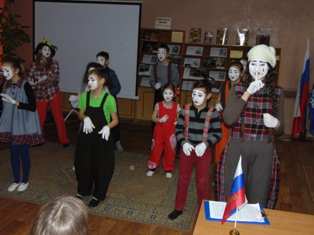 В завершении мероприятия всех с торжественным и важным днем поздравили участники школьного театра «Лицедеи» Навлинской СОШ №2 (рук. Т.В. Анисимова). Они представили пантомиму «Надежды маленький оркестрик».