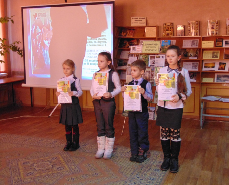 В конце встречи состоялось награждение участников областного конкурса детских рисунков, проводимым заповедником «Брянский лес». Ребята получили дипломы и поощрительные грамоты.