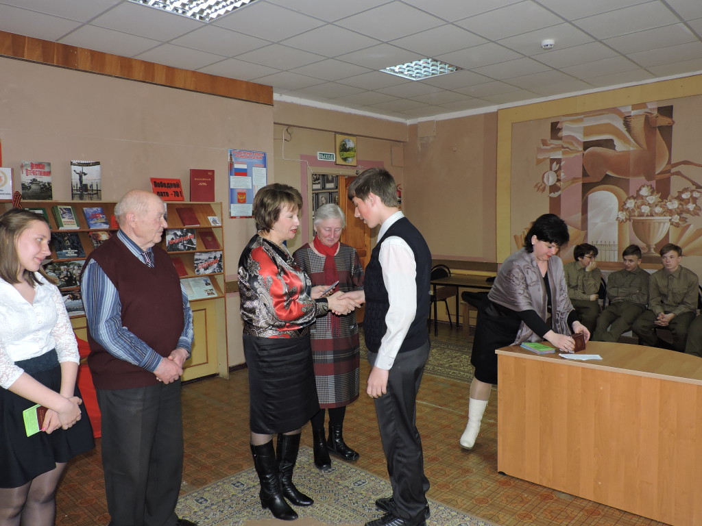 Макарова В.Ф., Прудников Е.Ф. и Семыкина Н.В. тепло поздравили ребят и пожелали им быть достойными гражданами, любить и беречь свою Родину, как их деды и прадеды, знать историю и чтить память тех, кто ценой своей жизни отстоял свободу и независимость нашей страны.