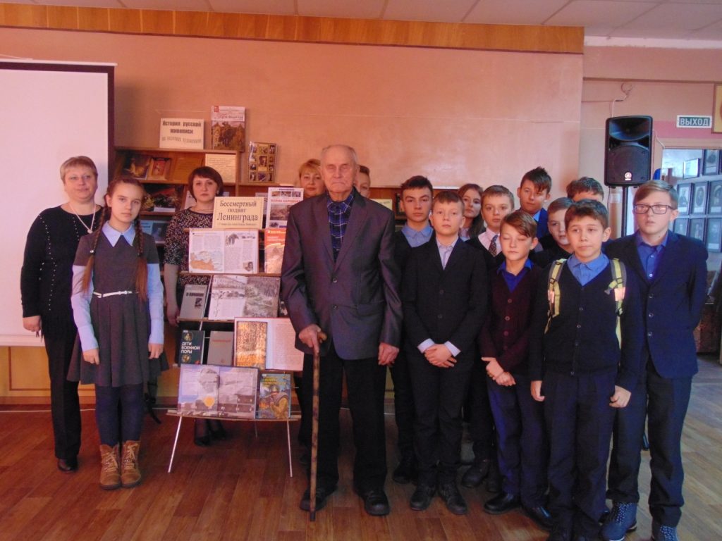 Школьникам рассказали о самых героических страницах войны – обороне и снятии блокады Ленинграда, о героизме жителей города, в том числе, детей. Ребята узнали о том, как маленькие ленинградцы в блокадном городе сражались с голодом, холодом, смертью, как с первых дней войны старались помочь взрослым: вставали за станки вместо ушедших на фронт родителей, строили оборонительные укрепления, ухаживали за ранеными. Более пяти тысяч ленинградских подростков за мужество и героизм, проявленные в дни блокады были награждены медалями за оборону Ленинграда. Рассказ о дневнике одиннадцатилетней школьницы Тани Савичевой нельзя слушать без боли и содрогания. Девять страниц записной книжки, написанных детской рукой, поведали миру о трагедии, которая произошла только в одной из многих ленинградских семей.