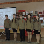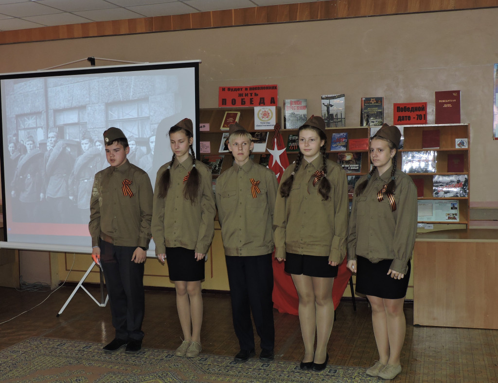 Мероприятие сопровождалось электронной презентацией, звучали песни на стихи поэтов – фронтовиков: «Священная война», «В землянке», «Ах, война, что ты сделала подлая», «Мы за ценой не постоим».
