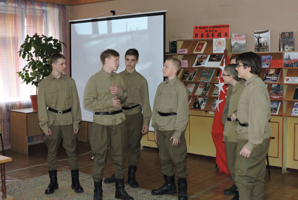 Участники театра «Лицедеи» Навлинской СОШ № 2 (руководитель Анисимова Т.В.) представили инсценировку отрывка из поэмы «Василий Теркин» А.Твардовского.